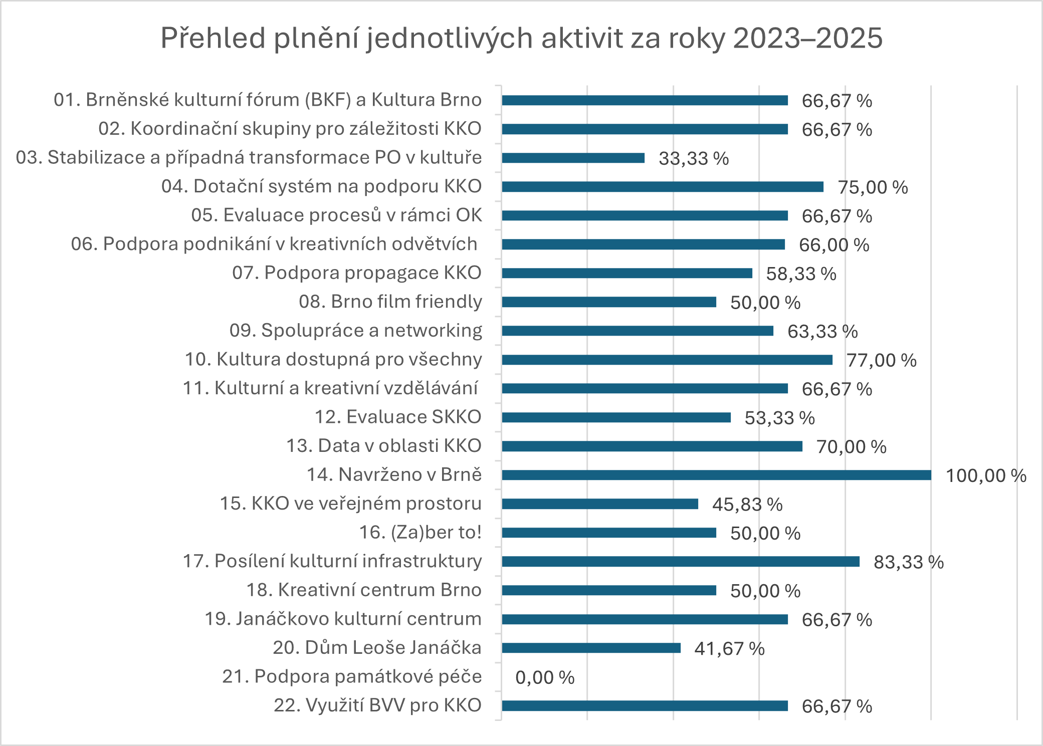 Díky tomu může Brno cíleně budovat svou pozici jako živé, otevřené a sebevědomé kulturní a kreativní město, a to nejen v rámci České republiky, ale i v mezinárodním kontextu.