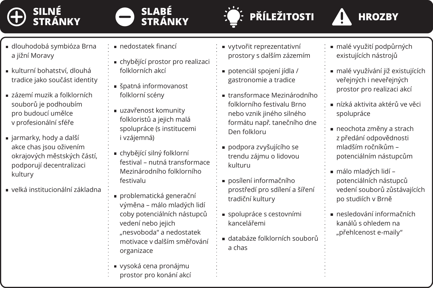 V návaznosti na setkání jsme vytvořili stručnou SWOT analýzu: